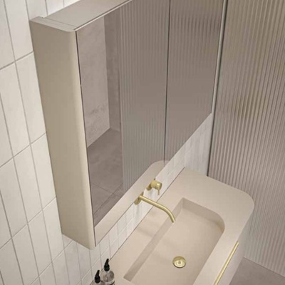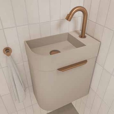 Maak kennis met Concept R, de nieuwste innovatie binnen de Sanibell Ink collectie. Deze serie brengt verfijning en zachtheid samen in een uniek badkamermeubel met een moderne, organische uitstraling. Concept R onderscheidt zich door onderkasten met prachtig afgeronde hoeken en strakke verticale freeslijnen. De subtiele rondingen geven het meubel een vriendelijke, elegante vormtaal die perfect past in de badkamer van nu. Sanibell Ink Concept R serie is verkrijgbaar in vier lakkleuren en drie nieuwe fineerkleuren, zodat er voor iedere badkamer een perfecte match te vinden is.